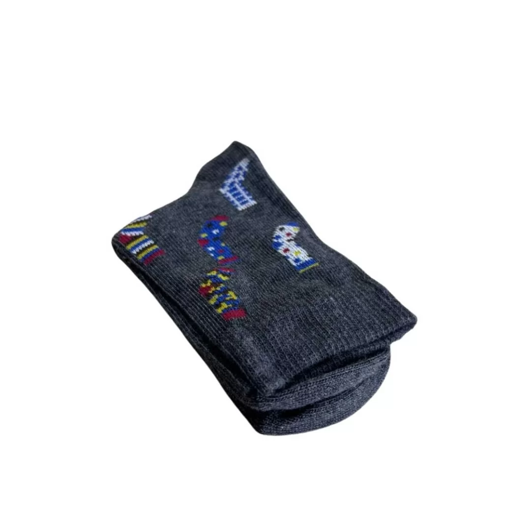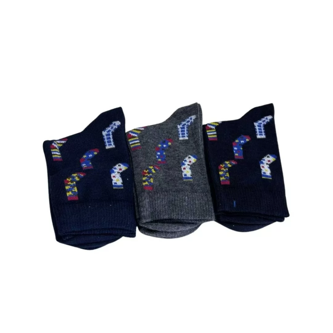 Ogni tris include tre paia di calzini in colori assortiti e con fantasie giocose, ideali per accompagnare i bambini nelle loro avventure quotidiane. Le tonalità vivaci e i dettagli curati rendono questi calzini un accessorio divertente e stiloso, perfetto per completare ogni outfit, sia per la scuola che per il tempo libero.