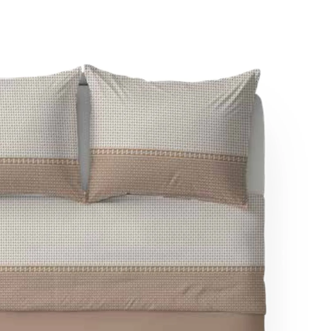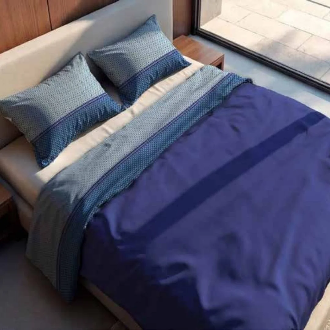Il set matrimoniale è pratico e funzionale: il lenzuolo sotto con angoli ed elastico assicura una perfetta aderenza al materasso, mentre le federe a sacchetto completano il letto con eleganza e praticità.
