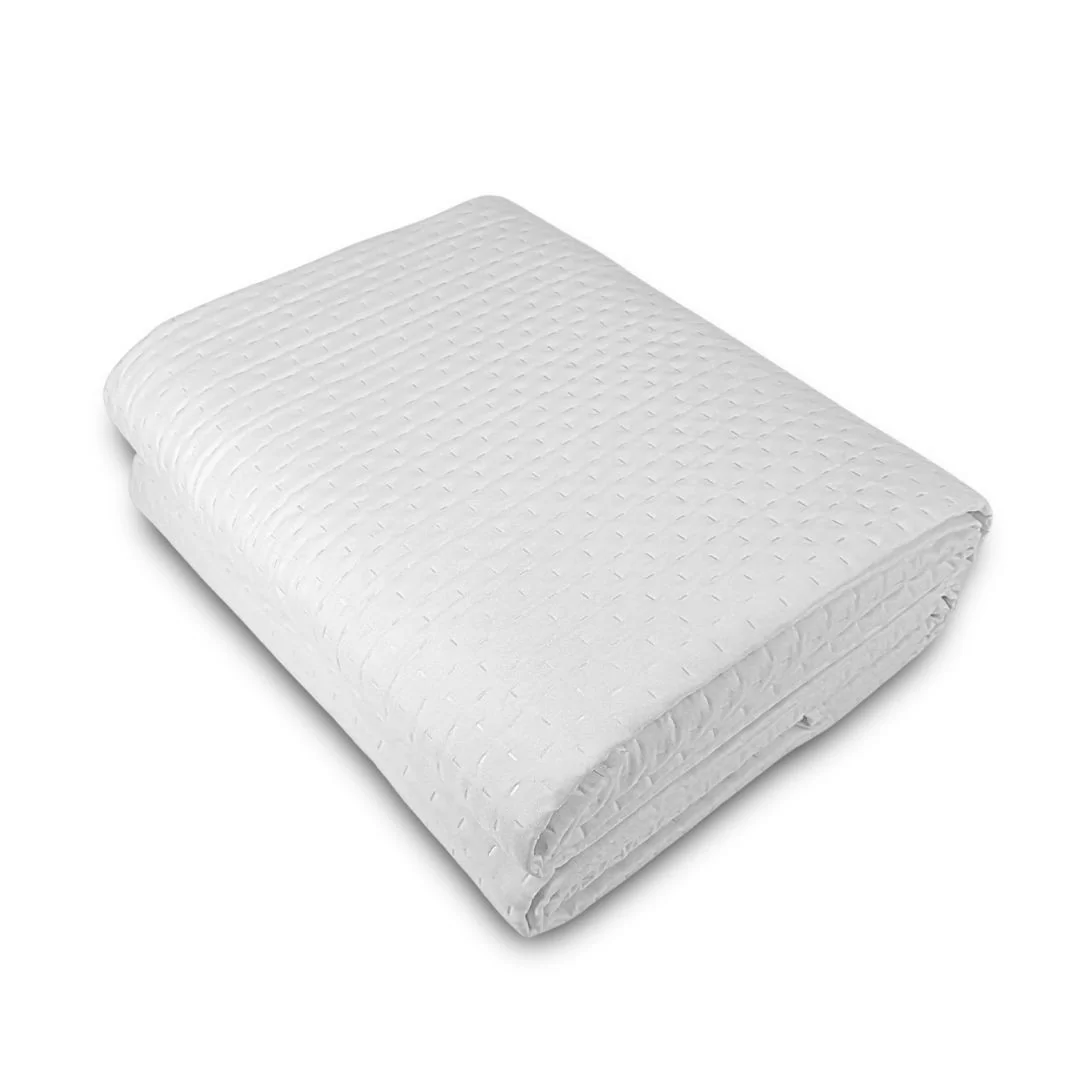 Con le sue generose dimensioni di 240x250 cm, questo copriletto matrimoniale si adatta perfettamente ai letti king size, assicurando una copertura uniforme e un’estetica impeccabile. Il colore bianco, elegante e luminoso, si abbina con facilità a qualsiasi tipo di arredamento, dal più classico al moderno, donando un tocco di freschezza e raffinatezza all’ambiente.