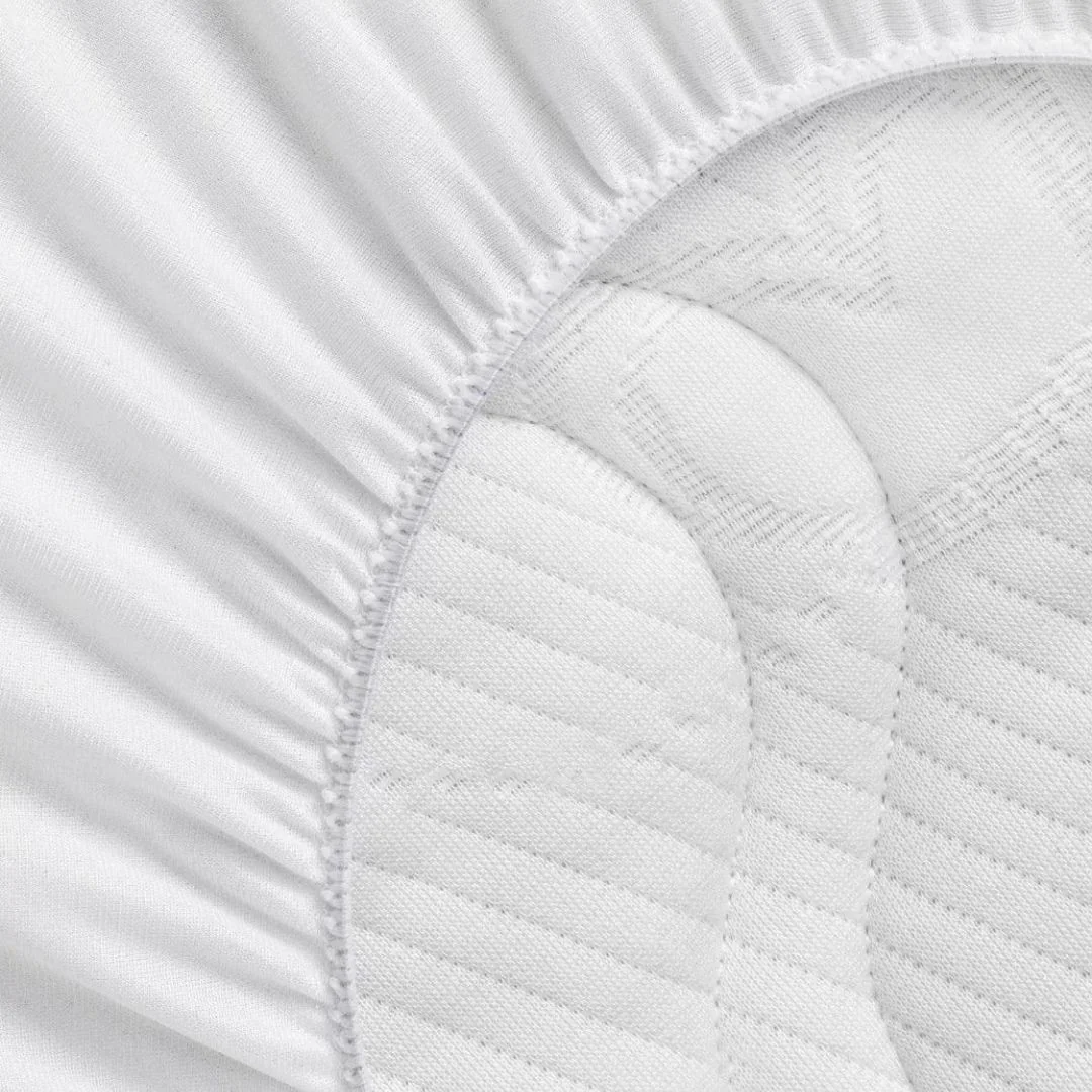 Il sistema con angoli elasticizzati permette una perfetta aderenza al materasso, mantenendo il coprimaterasso sempre ben teso e stabile durante l’uso.