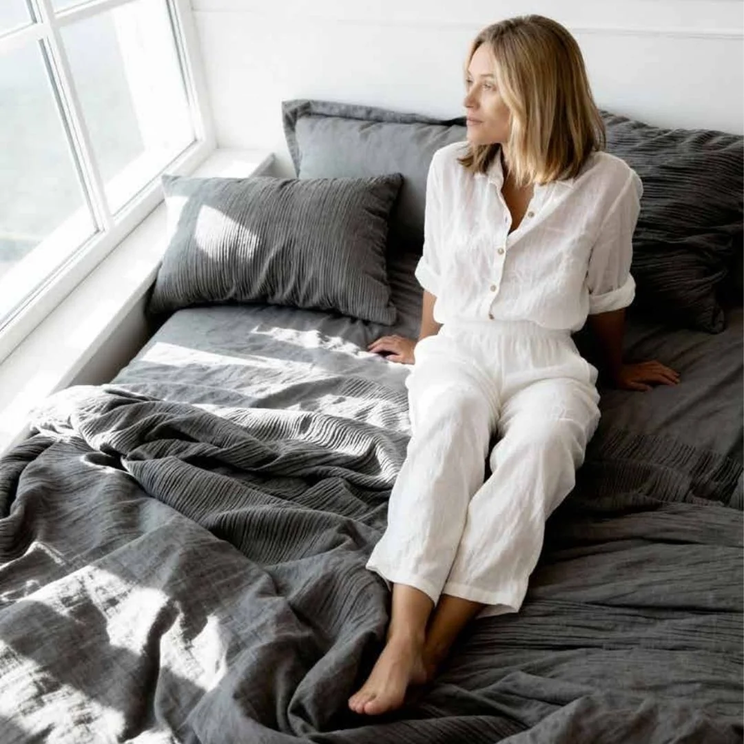 La speciale lavorazione Stone Washed, ottenuta tramite lavaggio con pietre pomici, dona al tessuto un caratteristico effetto leggermente vintage, oltre a una morbidezza superiore. Questo trattamento rende il copripiumino naturalmente stropicciato e quindi non necessita di stiratura, risultando perfetto per chi cerca praticità senza rinunciare allo stile.