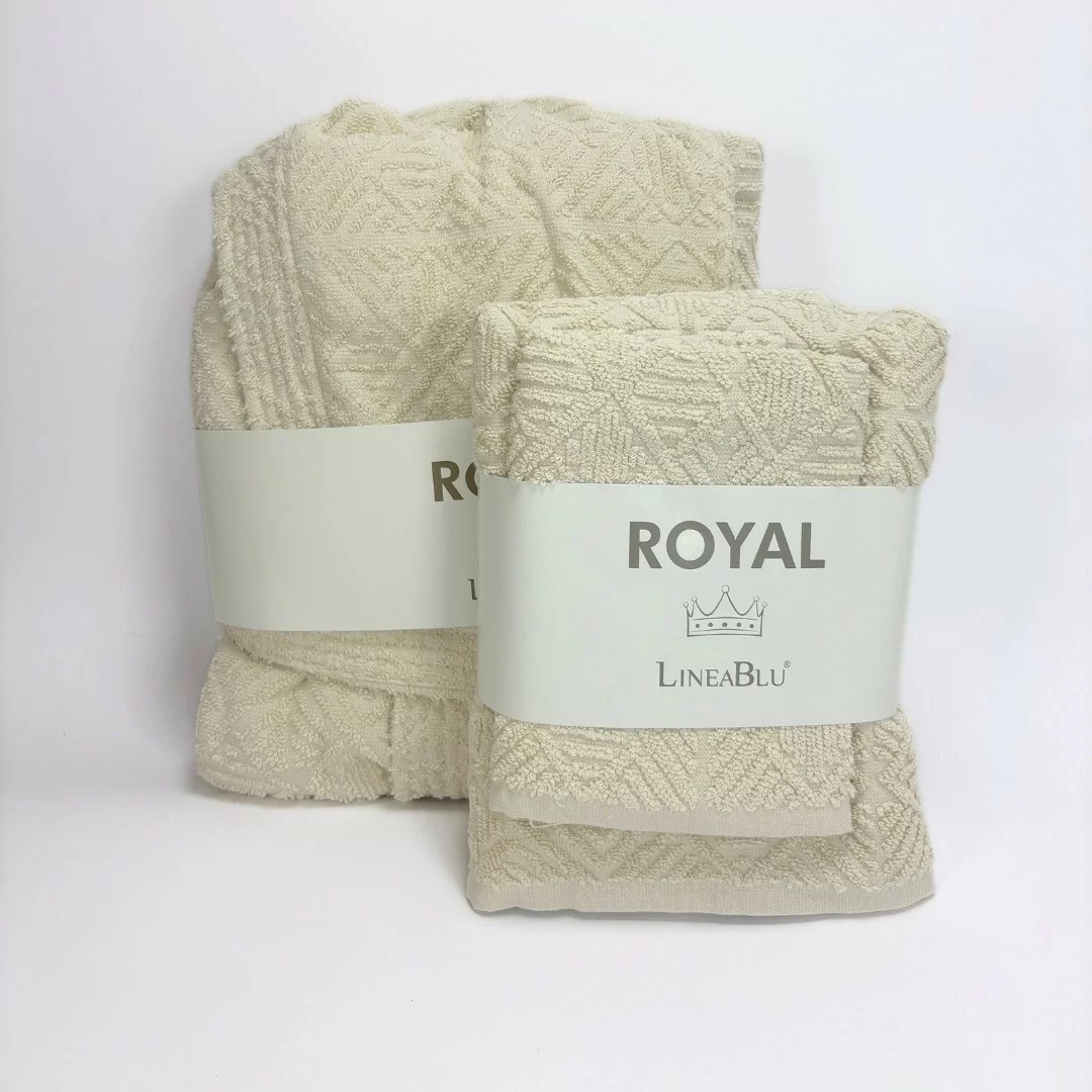 Scopri il massimo comfort e l'eleganza con il set coordinato LineaBlu Art. Royal, realizzato con una pregiata spugna di alta qualità da 520 gr/mq in puro cotone 100%. Questo set è perfetto per chi desidera avvolgersi in una morbidezza ineguagliabile dopo un bagno rilassante, garantendo un'esperienza di benessere ogni giorno.