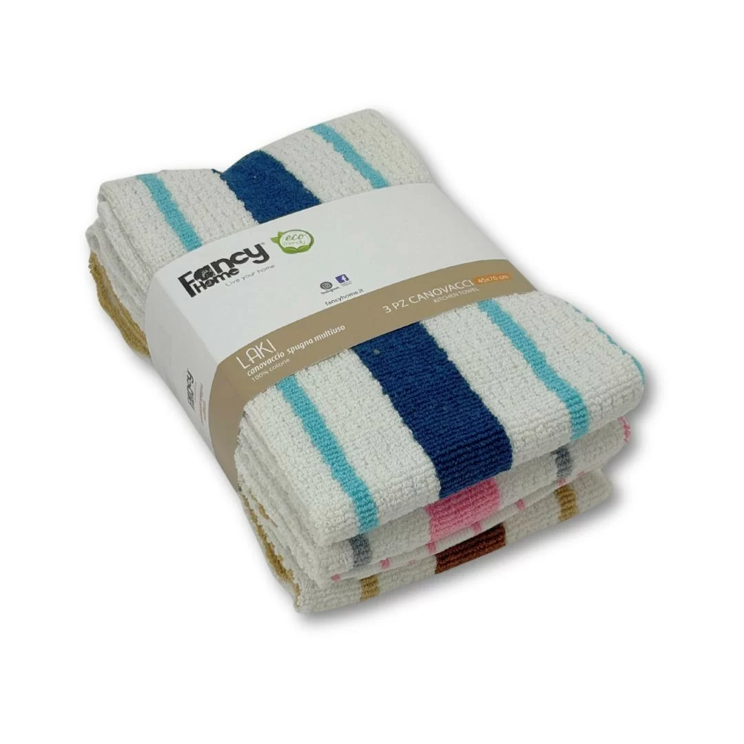 Canovacci Cucina Fancy Home art. Laki Tris Spugna. Porta nella tua cucina praticità e stile con il Set 3 Pezzi Canovacci in Spugna Multiuso Fancy Home art. Laki. Realizzati in 100% cotone di alta qualità, questi canovacci sono studiati per garantire la massima assorbenza e resistenza, diventando indispensabili alleati nelle attività quotidiane.
