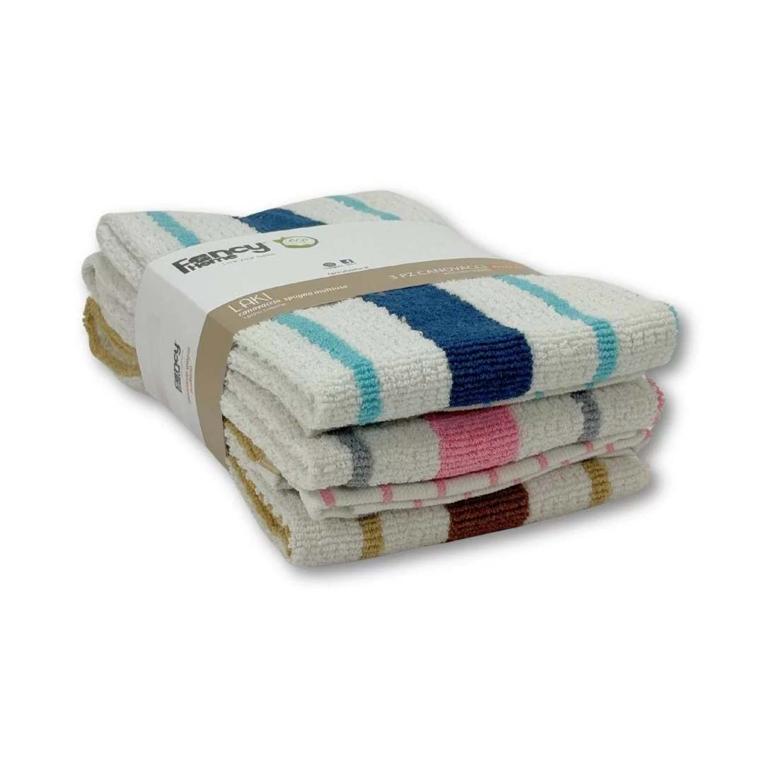 Ogni set è composto da 3 canovacci di dimensioni 45x70 cm, proposti in colori assortiti e vivaci, ideali per dare un tocco di freschezza e armonia al tuo ambiente domestico. Il motivo a righe, elegante e senza tempo, si adatta facilmente a qualsiasi stile di cucina, dal classico al moderno.