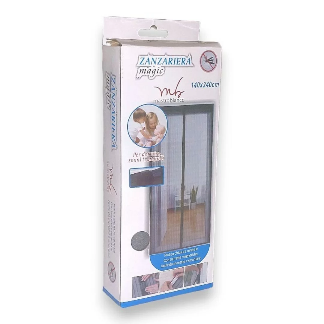Zanzariera Magnetica MastroBianco 2 pannelli. Le Zanzariere Mastrobianco 140x240 rappresentano la soluzione ideale per proteggere la tua casa dagli insetti fastidiosi, permettendoti di godere di un'atmosfera piacevole all'interno senza dover preoccuparti delle zanzare o di altri insetti volanti. Queste zanzariere sono dotate di 18 magneti, ciascuno caratterizzato dalla sua forza attrattiva unica, il che significa che si chiuderanno automaticamente senza sforzo non appena qualcuno vi passerà attraverso. L'installazione di queste zanzariere è incredibilmente facile e alla portata di tutti. Potrai scegliere tra due opzioni di fissaggio: i punti di velcro adesivi o le puntine incluse nella confezione. Questa flessibilità di installazione consente di adattare le zanzariere alle tue esigenze specifiche, indipendentemente dal tipo di finestra o porta che desideri proteggere. Le dimensioni delle Zanzariere Mastrobianco, 140x240, sono progettate per adattarsi a una varietà di aperture, rendendo questo prodotto versatile ed efficace per diversi scopi. Che tu voglia proteggere la finestra della camera da letto o l'ingresso principale della tua casa, queste zanzariere possono essere adattate alle tue esigenze. In sintesi, le Zanzariere Mastrobianco 140x240 con calamite sono una soluzione pratica, efficace e flessibile per mantenere gli insetti fastidiosi fuori dalla tua casa. Grazie alla loro facilità di installazione e alla tecnologia delle calamite, potrai godere di una casa più confortevole e senza zanzare.